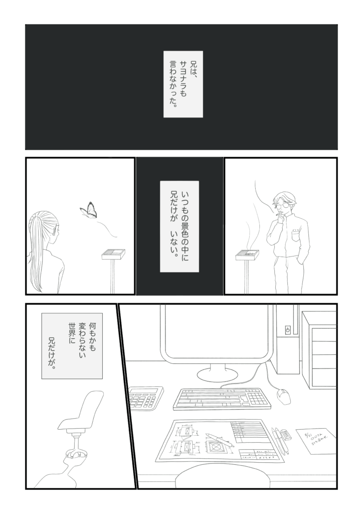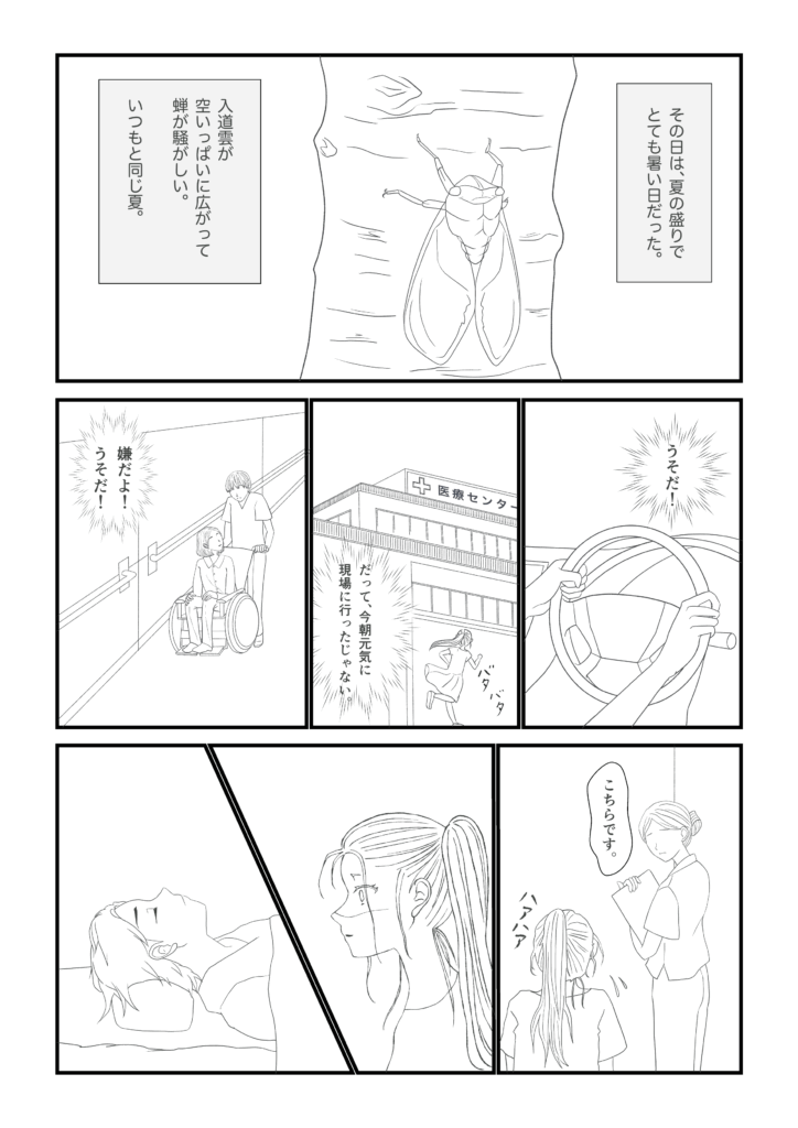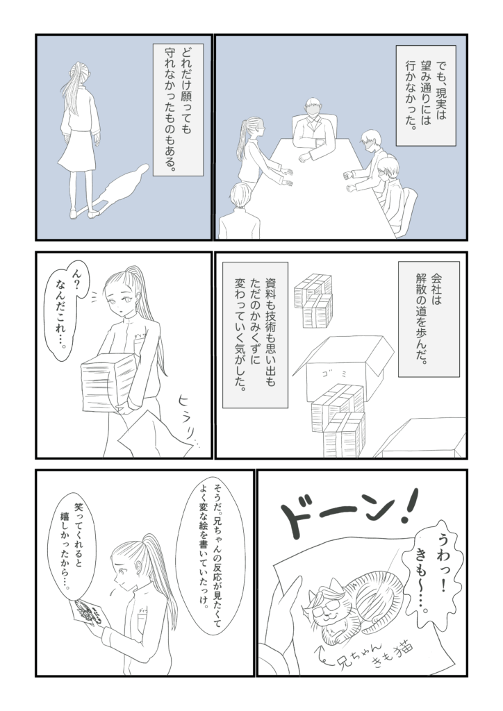 四コマ漫画以外のマンガを制作することは初めてのことでしたので、拙い表現かもしれません。