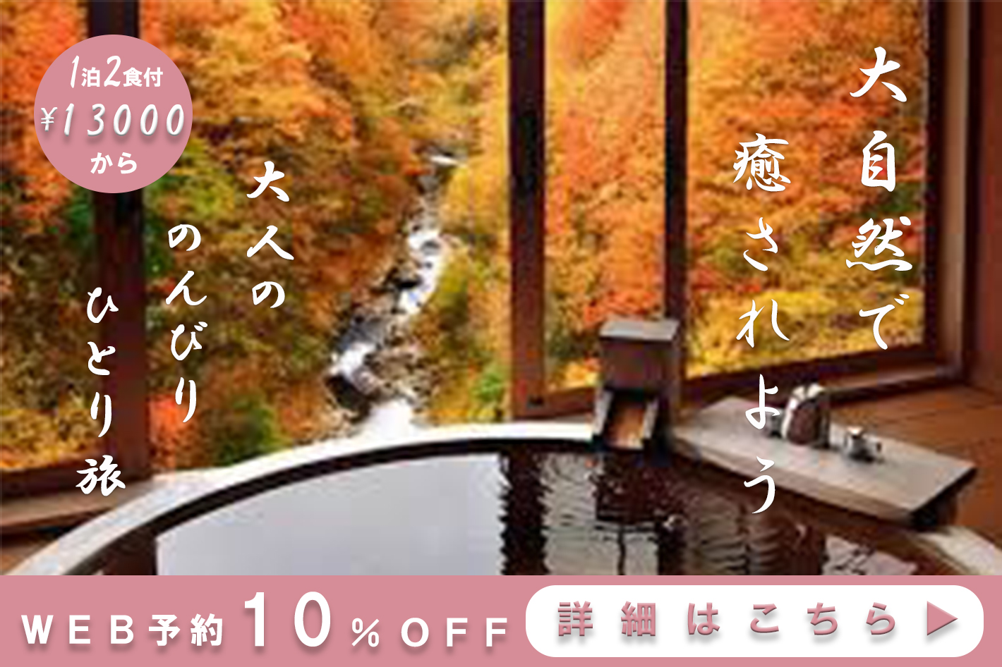 落ち着いた大人のひとり旅をテーマに、架空の温泉宿のWeb広告バナーを作成しました。